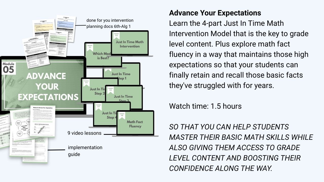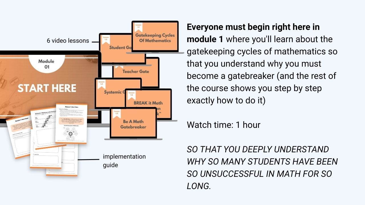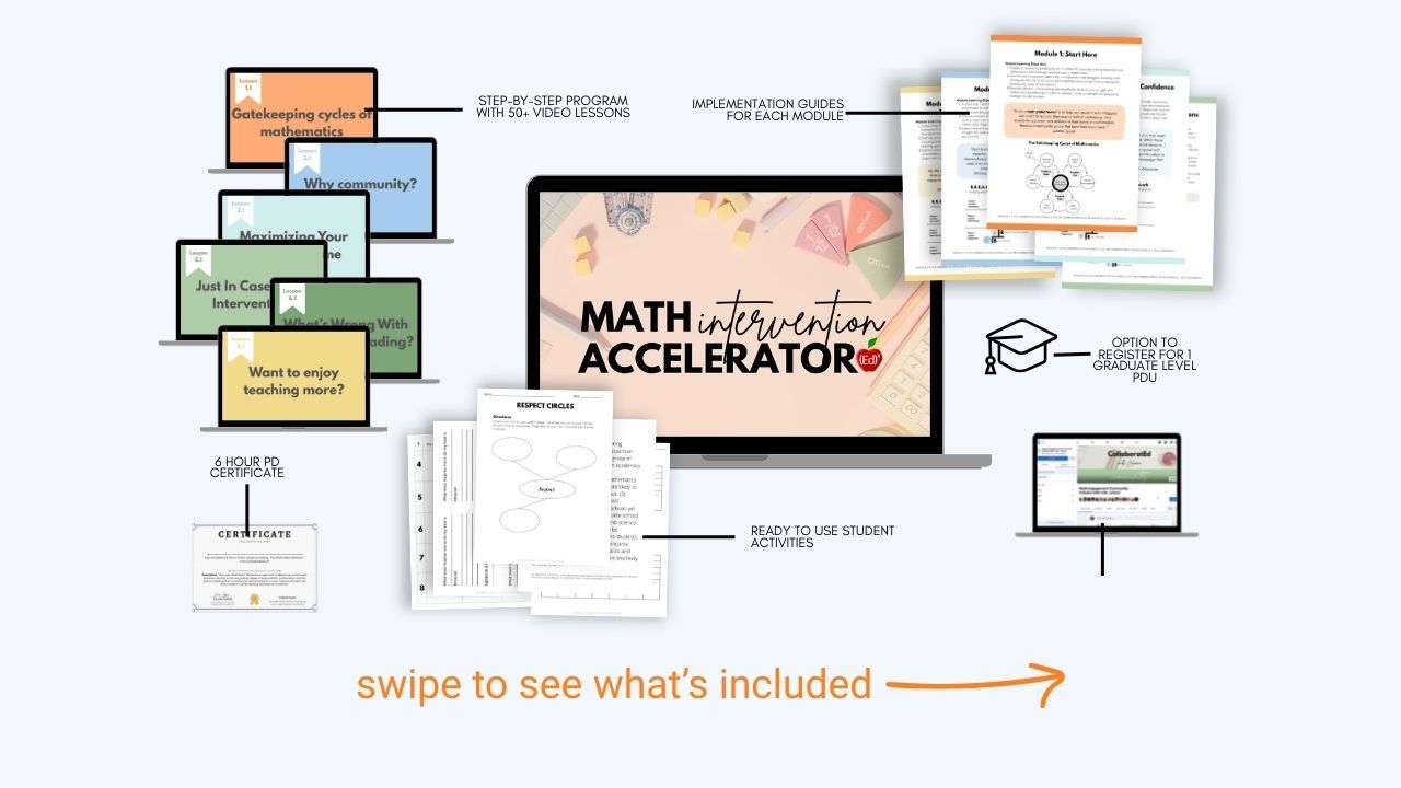 - The Full Accelerator Course: Deep dives into the full BREAK it Math Intervention Framework with module videos and printable implementation guides.