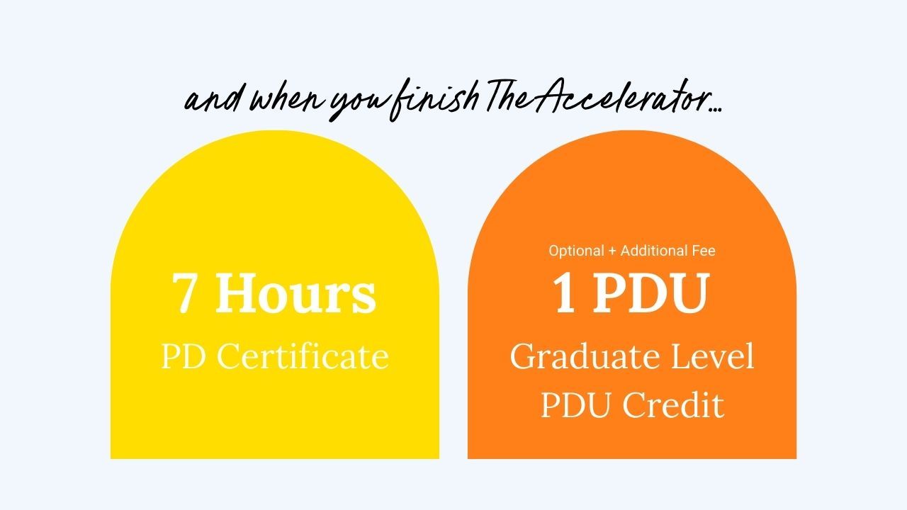 After you register for the Accelerator you will have the option to register for 1 PDU (Graduate Level PD Credit) with a partner university. There is an additional fee of $70 paid directly to the university, not included in the registration for the Accelerator.