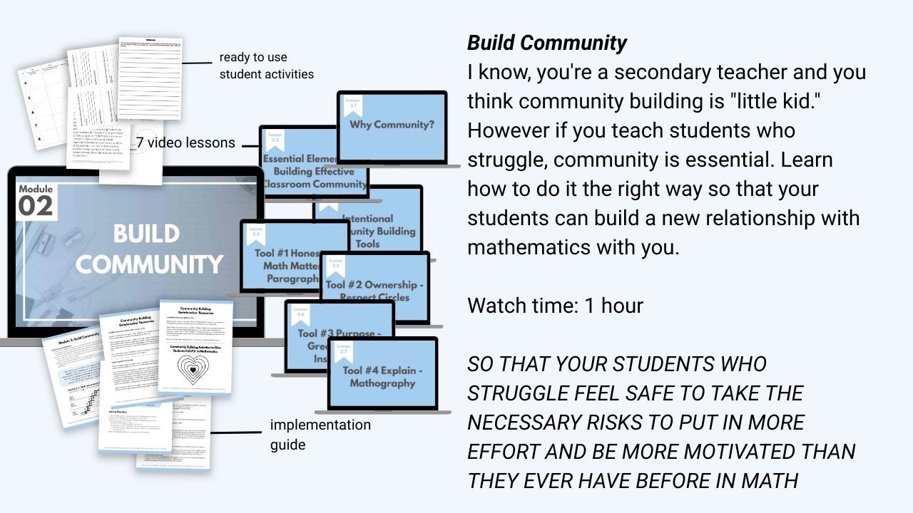 This course replaces the guesswork about effective strategies for students who struggle with a step-by-step framework to increase engagement, achievement, and motivation of your students who have been historically unsuccessful in mathematics.