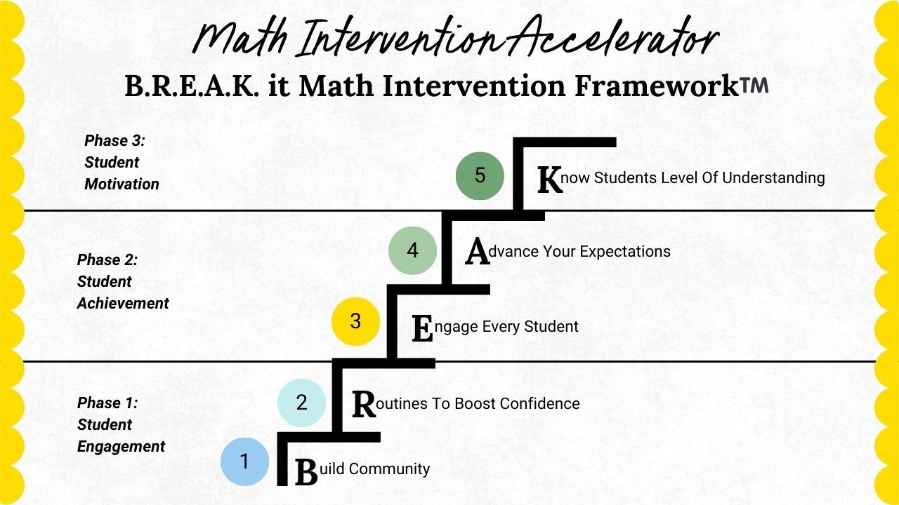 First, to get real, lasting change you need the full picture. You need the B.R.E.A.K. it Math Intervention Framework™ inside the Math Intervention Accelerator program