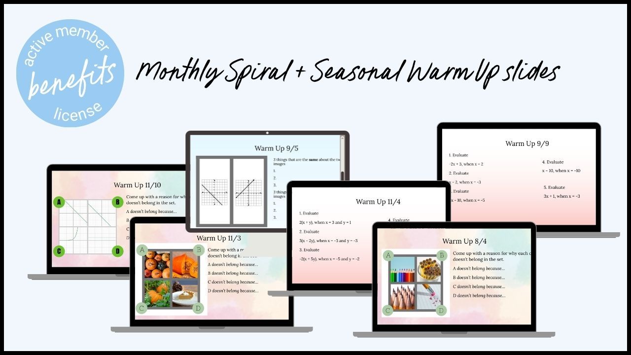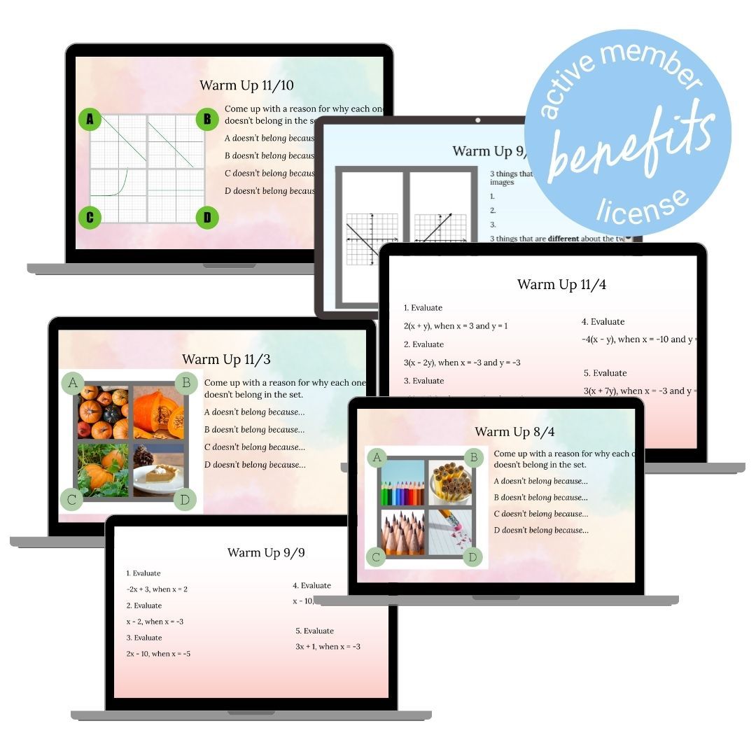 Learn the 6 Core Engagement Structures + get done for you warm ups so that you see your students mathematical confidence rise.